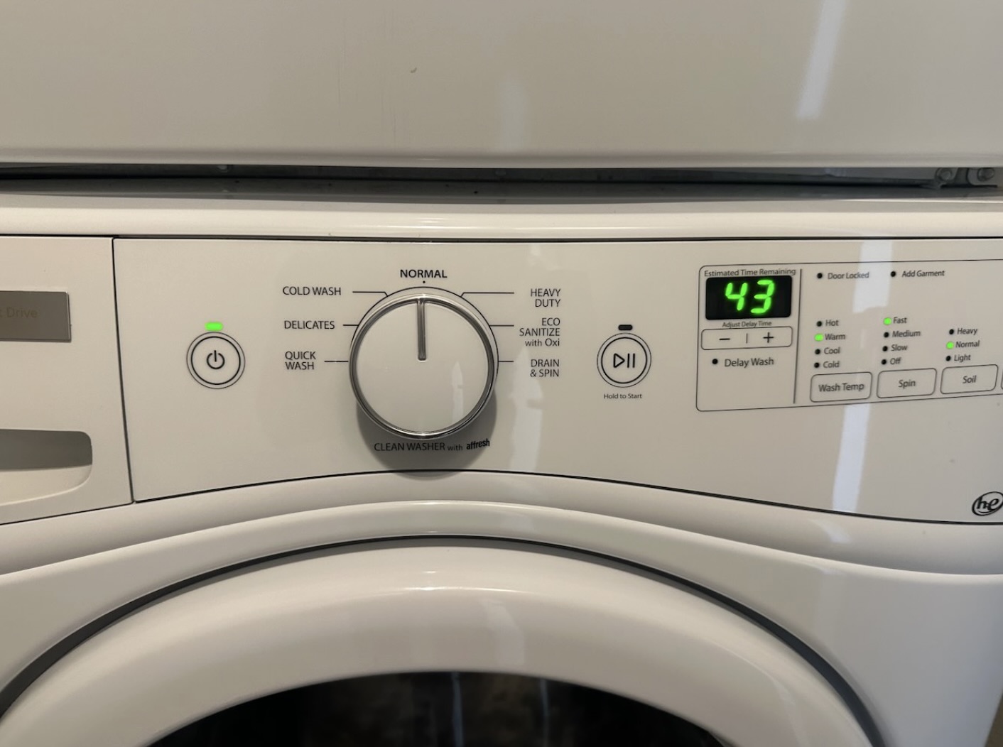- “Normal” wash cycle, warm water