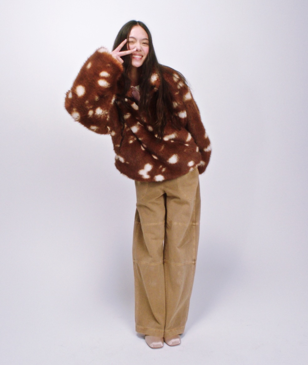 If you weren't privy to the Sandy Liang x GAP collab that came out in October, you still have time to get your hands on the Spotted Vegan Fur Half-Zip Pullover. This warm, fluffy jacket pays homage to Sandy’s early designs (which featured fleece pullovers and other whimsical floral patterns). Not only would I recommend getting your hands on this fleece while you still can, but if you are lucky enough to snag the last pieces of the GAP collab in store or second hand, I’m sure you won't be disappointed.