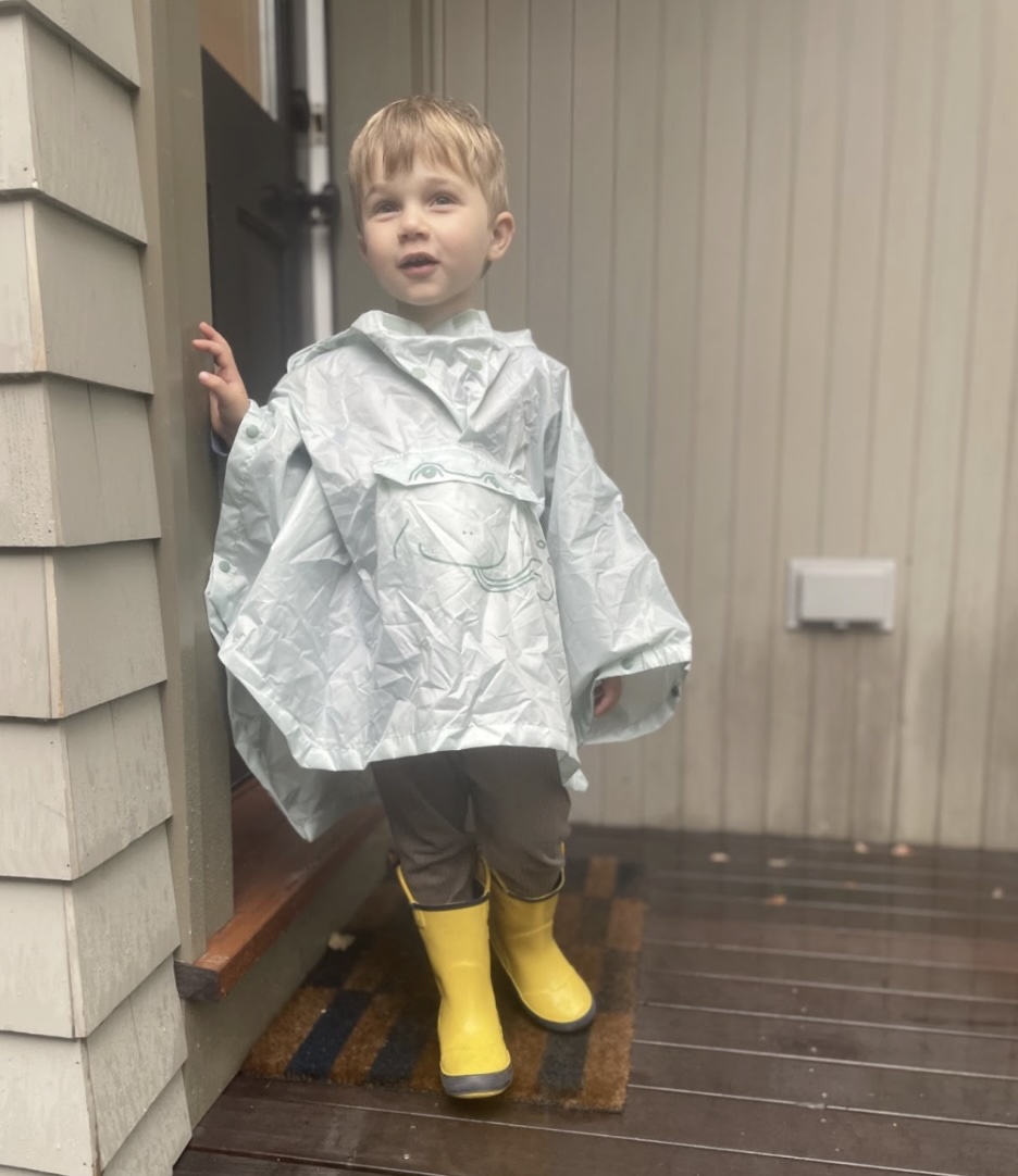 Who says a rain layer has to be expensive? This packable poncho is great for drizzly commutes, or as something to stash in our backpack on cloudy days. Plus what kid doesn’t look extra adorable in a poncho?