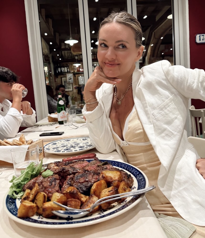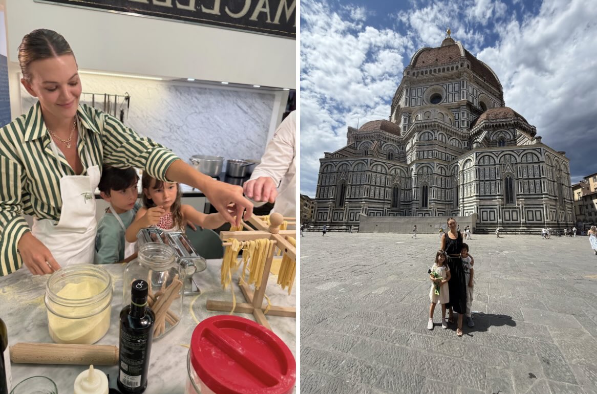 In Florence, the pace shifted. We traded the coast for (hot) cobblestones, sun-soaked days spent climbing up to Piazzale Michelangelo for panoramic views, dipping into Uffizi’s Botticellis, and chasing gelato from shop to shop (there were a few days we had two each). Meals here tasted like they had been pulled straight from the earth–tomatoes so ripe they barely needed olive oil, pasta with truffle shavings that felt almost too decadent for a weekday lunch. My favorite memory, and meal, was a cooking class we did with The Cooking Touch where we made two types of pasta and a lava cake from scratch, beginning to end. The appetizer alone – a block of Parmesan cheese and a glass of red wine – was somehow remarkable and I’m still thinking about it today.