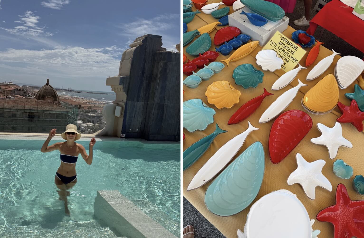 From there, we made our way to Forte dei Marmi, a somewhat infamous seaside town about an hour drive away from Florence (we rented a car at the airport after flying into Florence) that hums with life at every hour. We parents found our way easily – espressos, matchas, and pastries at cafés tucked off Via Carducci, late dinners at hidden trattorias (the authentic hole-in-the-wall restaurants were some of my favorite meals) – but Forte’s magic was really in its family-friendliness. The kids zipped around the piazza in their little kid go-karts, spent afternoons at the Forte Fun park, and even rode mini ponies through the town square. It was a true family-friendly haven. We spent a Sunday at Maito, one of the beach clubs, which was fun for the whole family. My husband and I also enjoyed a romantic half-day trip to a tiny town called Viareggio, 20 minutes away, for an authentic Italian, picture-perfect afternoon.