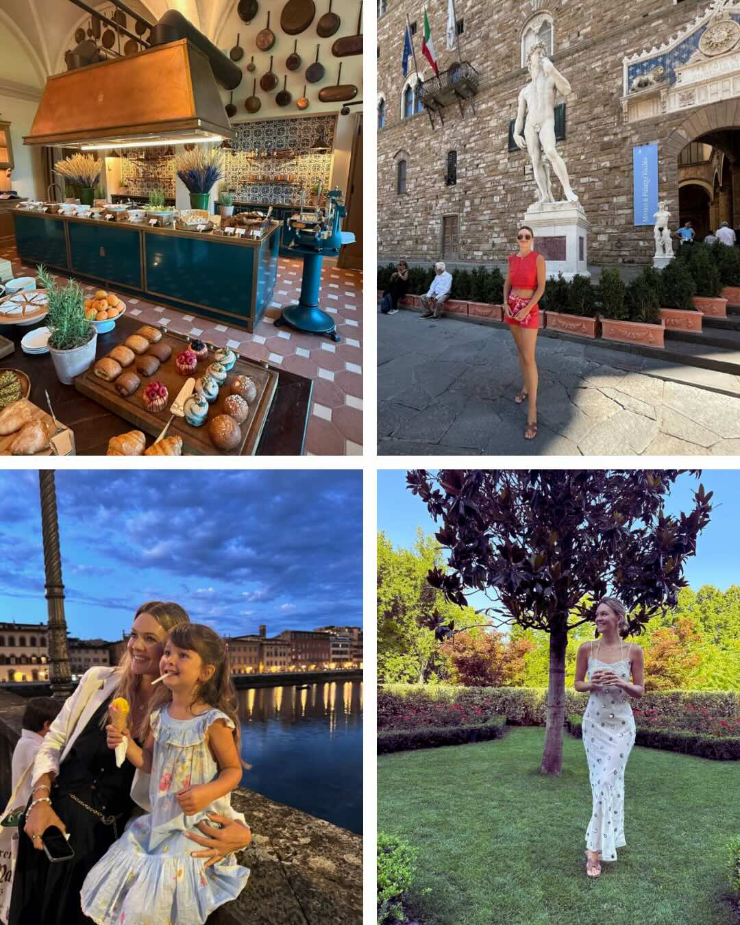 This is a 16th-century former boarding school turned Auberge, perched just 15 minutes above Florence. Think frescoed walls, cypress-lined drive, and the city’s largest pool (which we decided at the last minute we needed because of the kids and very hot Florence weather). The Collegio is equal parts old-world grandeur and modern hush, with olive groves, vaulted dining halls, and views of the Duomo that make you pause. I took the most pictures on the trips here–the ceramics, trees, interior details…all stunning and thoughtfully curated. I left thinking I needed two Tuscan terracotta full-body sculptures, but sadly just left with a hat.