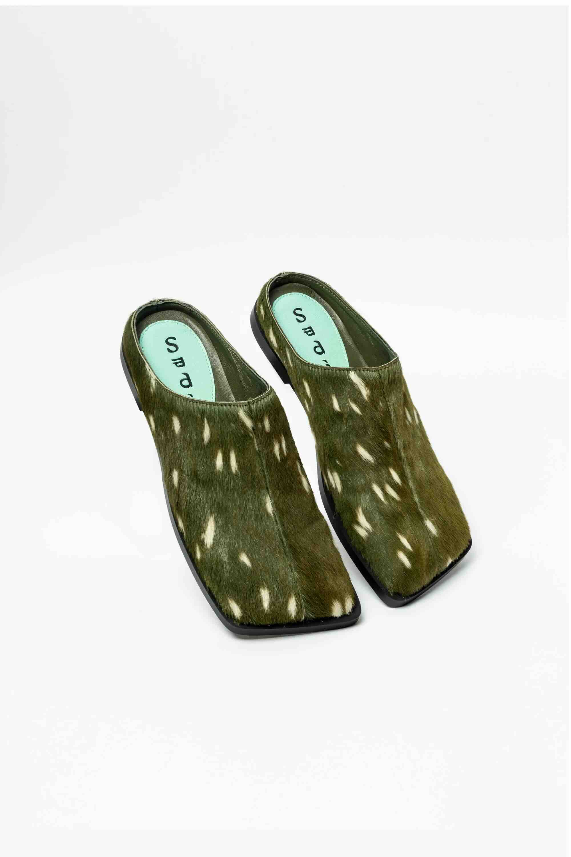 Furry, flat, and casual, these mules by Sadi might make you think of flippers, but they may just be the key to drawing attention to your toes. The silhouette may seem intimidating at first, but paired with an oversized trouser they can bring some casual vibes to a more refined look.