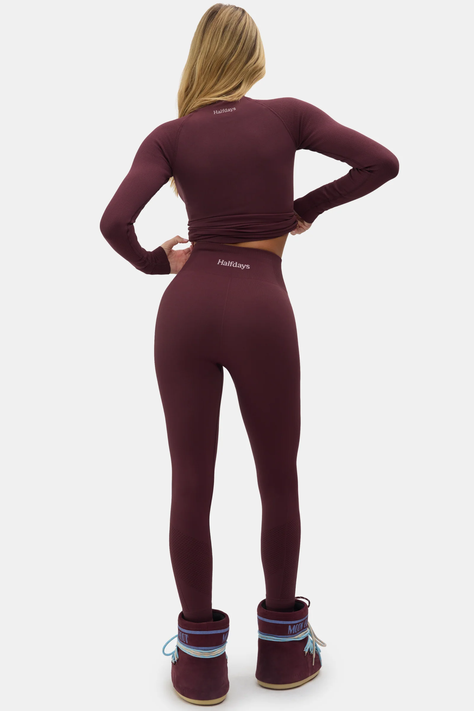 On top of their core colors, this year’s Winter 2025 collection is all about limited edition Glazed Cherry and Amethyst. Glazed Cherry is that deep, warm red that somehow flatters everyone. I instantly fell for the Johnson Top and Sophia Leggings in this color (the seamless texture hugs in all the right places without feeling restrictive). Designed for down to 15 degrees with compression to keep it in place, these are going to be the foundation to every good ski fit this year.