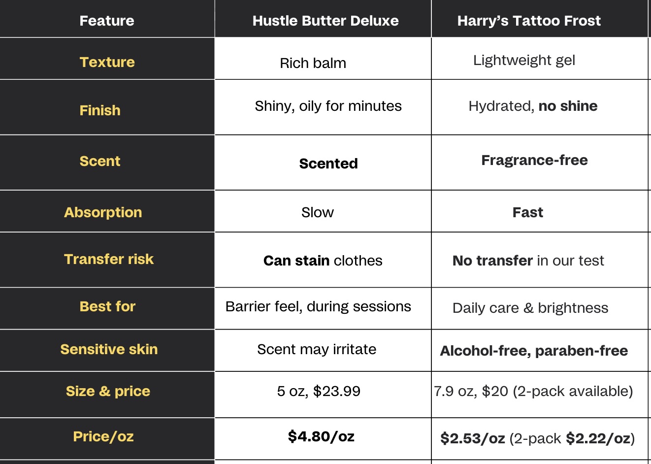 Formula & Feel: Comparing Hustle Butter and Harry’s Tattoo Frost