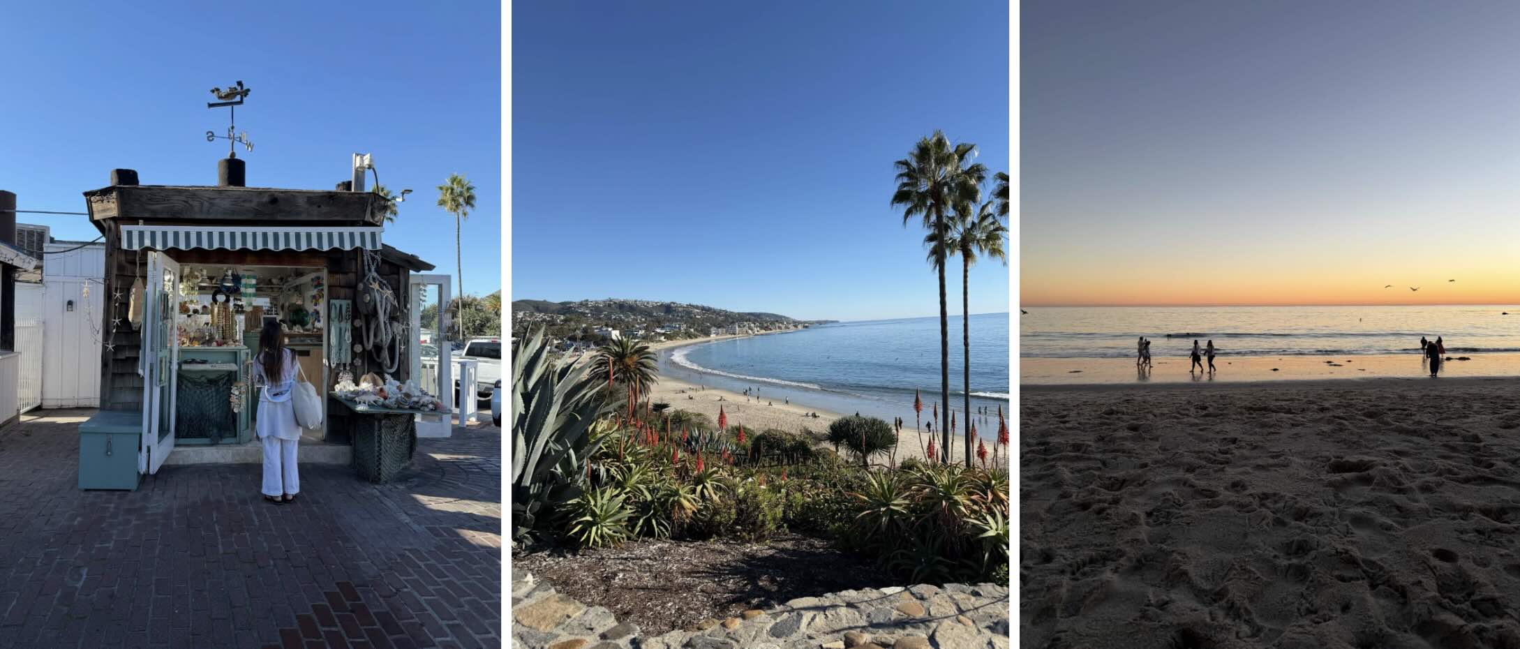 After our tour (which ran a bit over time – we had an enthusiastic group with many questions, and McKenna fielded each and every one of them with a smile) we headed back to our cottage to change into a typical California-in-December outfit – bikini, short sleeve shirt, sweater, puffer jacket – and head into Laguna Beach for an afternoon spent shopping around, snacking, and watching the sunset on the beach.