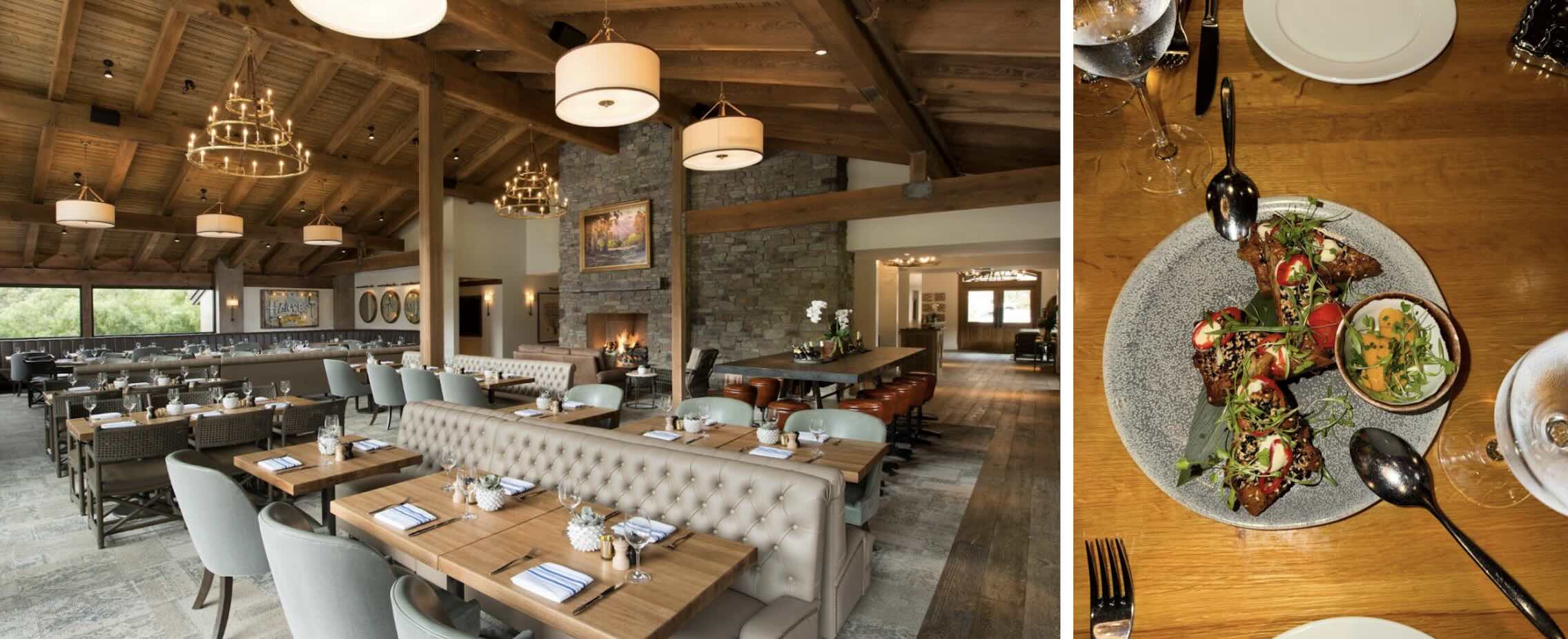 Once the sun had set, we made our way back to the property for our dinner reservation at Harvest. The restaurant atmosphere is cozy and rustic. We could tell that our delightful waiter Sal loved his job as he walked us through the menu, plus the weekend’s special uni menu (the uni was from a diver in Santa Barbara). Our order included: shrimp toast with uni, a beet salad, plus the short ribs for Bella and a piece of fish for me.