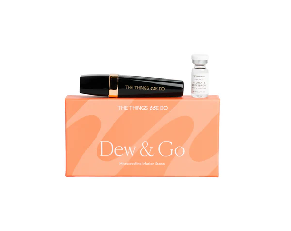 The Things We Do’s Microstamping Set helps gently stimulate the skin between professional treatments, extending luminosity and maintaining collagen momentum. “In-office we do a microneedling version that incorporates medical-grade ingredients that you won’t be able to have access to at home,” she explains. “But the continuation of at-home microstamping can prolong the in-office results.”